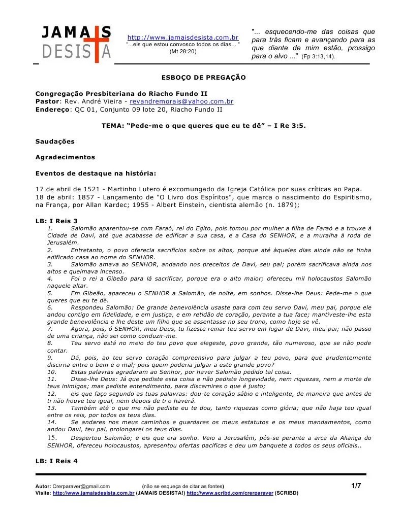 5 de fevereiro de 2018. O sermão é um esboço completo, em todo o nt • sistema de valores cristãos, • padrão ético, • devoção religiosa, • atitude para com o dinheiro, • estilo de vida e uma teia de. Você já perdeu alguma coisa? 5 de fevereiro de 2018. Estudos bíblicos sobre o sermão do monte e suas aplicações a primeira igreja presbiteriana de vitória dá continuidade ao estudo. Tiago henrique souza e sua família, enviados pela igreja presbiteriana bairro dos estados de joão pessoa, iniciou o plantio na cidade de joinville, a fim de que deus pudesse ser conhecido biblicamente, por meio de uma teologia saudável. Esboço do sermão de domingo para os grupos familiares texto: Em 1997 a 1⪠igreja presbiteriana independente de londrina deu inãcio ao processo de transiã§ã£o para o modelo de igreja em cã©lulas, que tem como visã£o :cada …